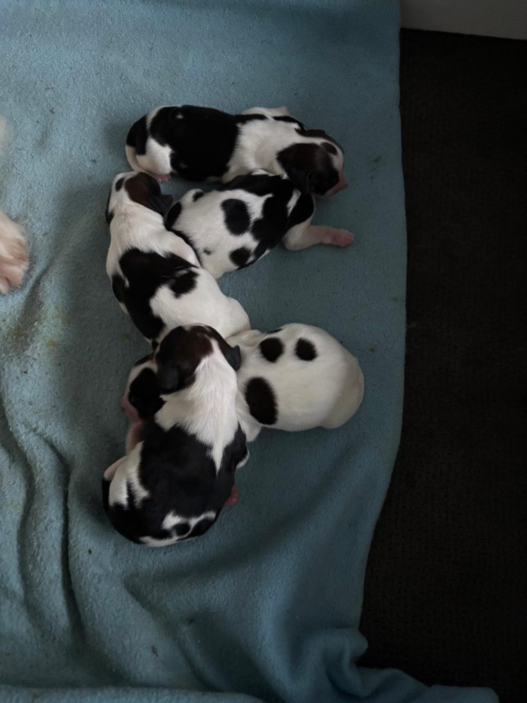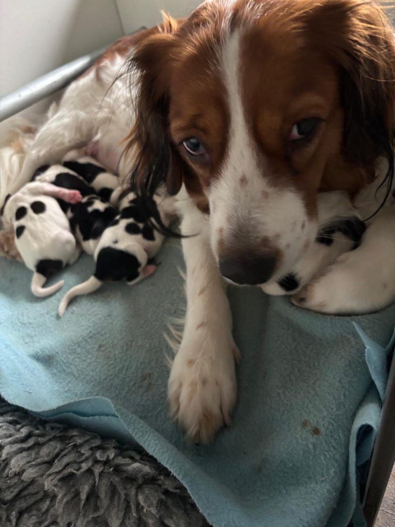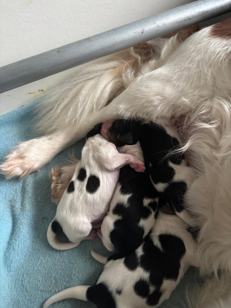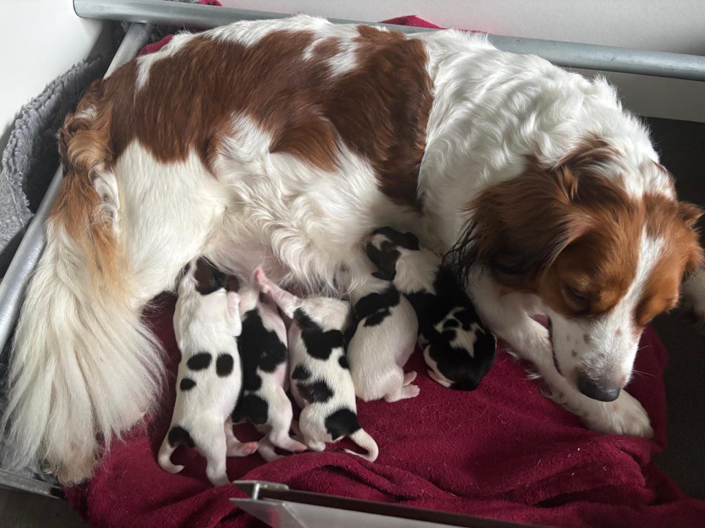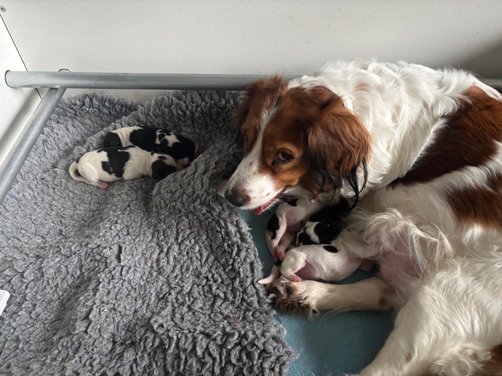 Vanochtend is Lucky moeder geworden van 5 pups. We moesten helaas naar de dierenarts voor een keizersnede omdat het toch niet doorzette. Moeder en pups maken het nu goed.
