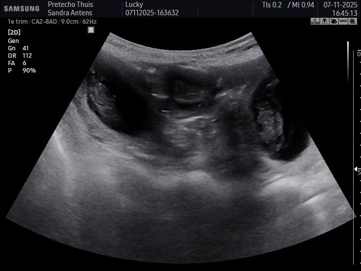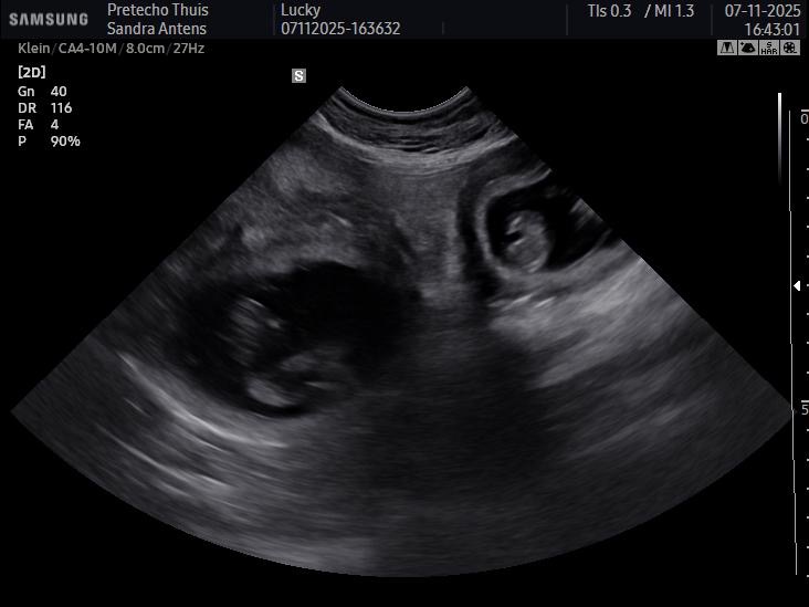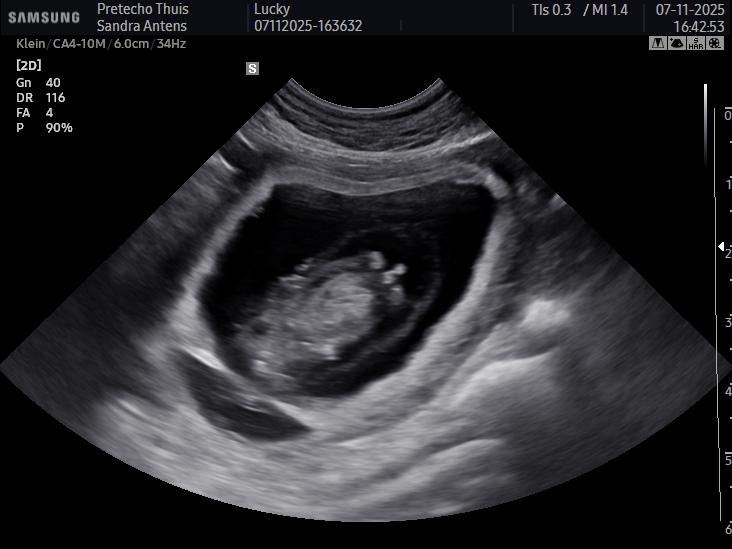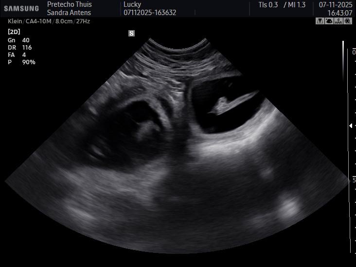 Vrijdag 7 november is Sandra van Drachtecho thuis (www.drachtecho-thuis.nl) bij ons aan huis gekomen om een echo te maken. Ze heeft 8 pups gezien op de echo. Hieronder wat foto’s en een filmpje.
